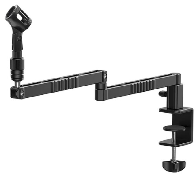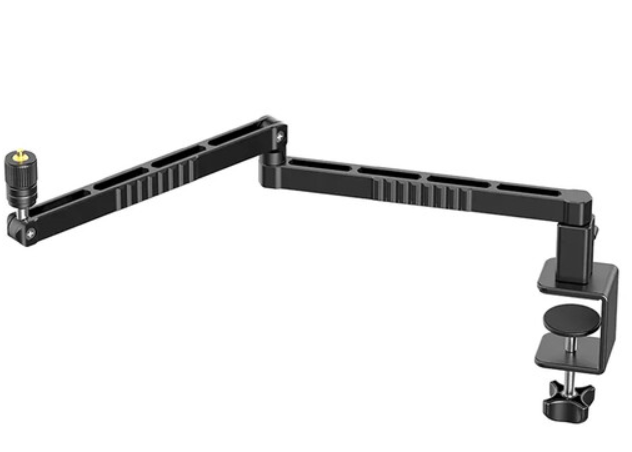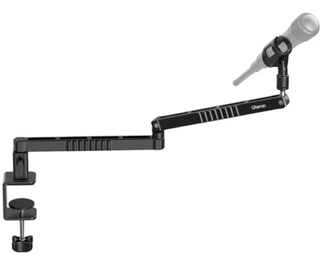 Az Ulanzi LS26 alacsony profilú, kihúzható mikrofonkar egy elegáns, fekete alumínium kar, amelyet akadálymentes élő közvetítés, sugárzás és karaoke berendezésekhez terveztek, és amely 18,9 hüvelykes teljes hatótávolságot biztosít 14,5 hüvelykes karhosszal és 9,8 hüvelykes kinyújtással a rugalmas pozicionálás érdekében. Kétfokozatú, csuklós kialakítása 180°-os függőleges dőlést és akár 360°-os vízszintes elforgatást, valamint 300°-os mikrofontartó forgást tesz lehetővé, mindezt intuitív csavaros gombokkal állítható be, míg a C-kapocs alapja akár 2 hüvelyk vastag asztalokat is megfog, csúszásgátló párnával a sziklaszilárd stabilitás érdekében. A levehető 1/4"-20 menetes klip (3/8"-16 és 5/8" adapterekkel együtt) segítségével akár 2,2 lb súlyú mikrofonokat is megtart, így a vendégek vagy a monitorok nem zavarják a kilátást, és a kábelek kezelése sem okoz gondot. Súlya mindössze 2,2 lb, így könnyen felszerelhető.