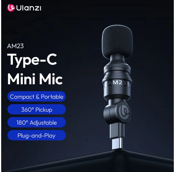 Az Ulanzi AM23 USB Type-C Omnidirectional Mini Microphone kompakt, plug-and-play kialakítású, tiszta, professzionális minőségű hangot biztosít. Ideális vlogokhoz, podcastokhoz, online találkozókhoz és mobil felvételekhez. 360°-os hangfelvételi képességgel, ütés- és szélzajt csökkentő funkcióval, valamint azonnali USB-C kompatibilitással rendelkezik telefonokkal, táblagépekkel és számítógépekkel.