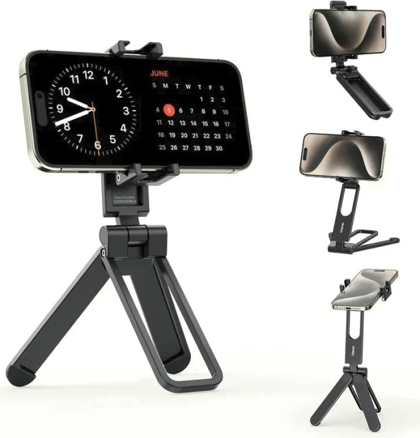 Az Ulanzi MA26 összecsukható zseb telefon állvány egy kompakt, könnyű állvány, amelyet okostelefonokhoz terveztek, függőleges és vízszintes felvételi módokkal, kettős hideg cipőfoglalattal kiegészítők számára, valamint összecsukható, hordozható kialakítással, amely ideális vlogoláshoz, fényképezéshez és mobil tartalomkészítéshez.