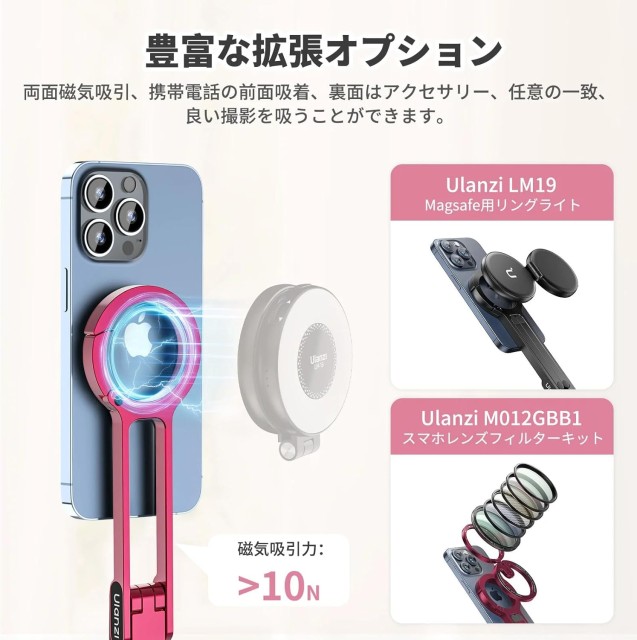 Ulanzi M056 MA30 mobiltelefon állvány, okostelefon állvány, MagSafe kompatibilis, erős mágnes, összecsukható, kényelmesen hordozható, szelfibot, okostelefon állvány, tökéletes élő közvetítéshez, felvételhez.