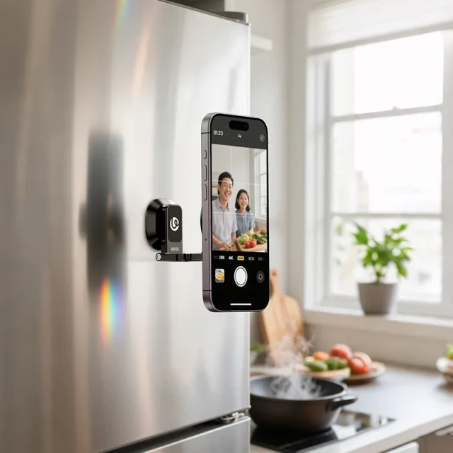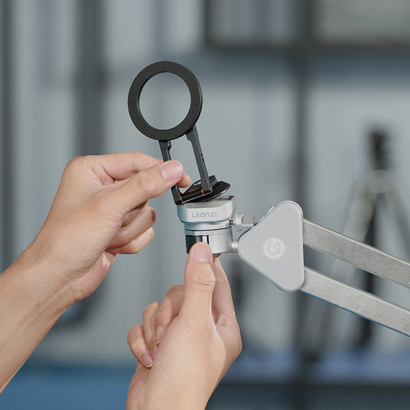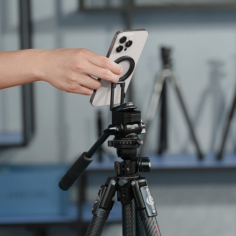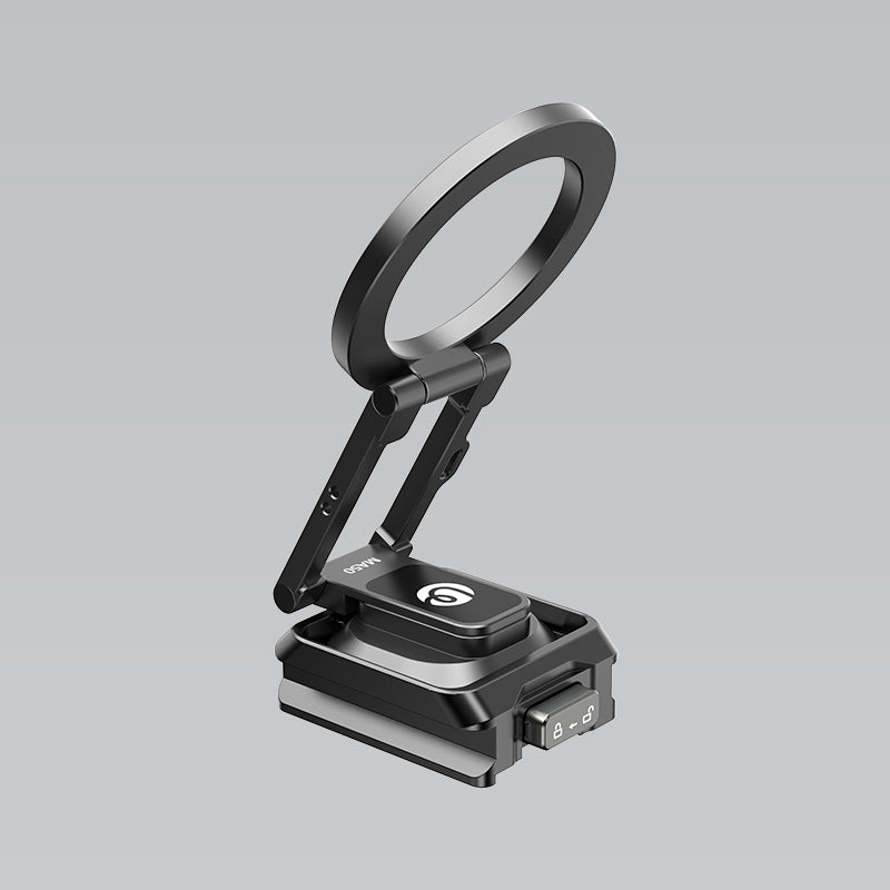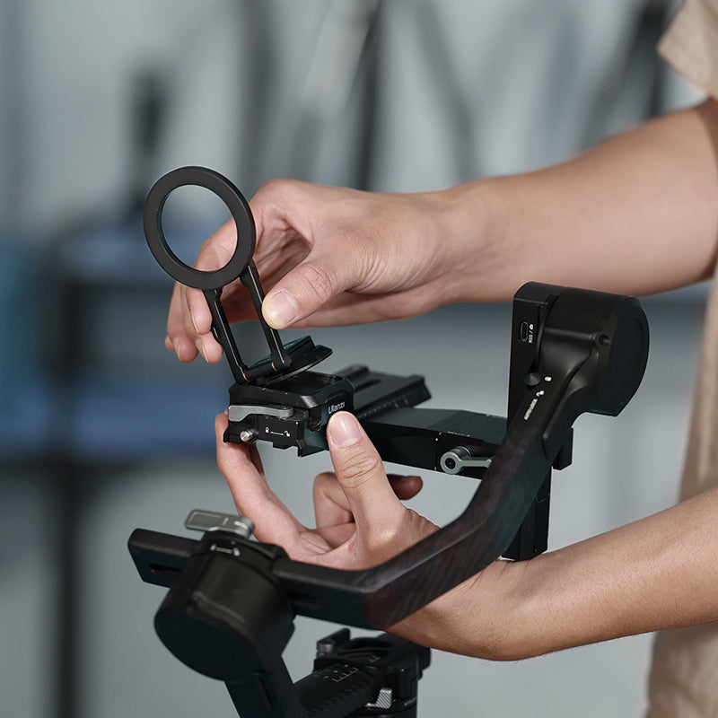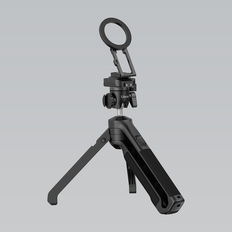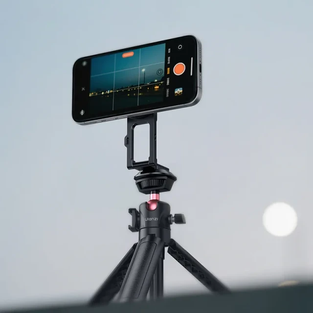 Az alján található beépített 1/4 hüvelykes csavaros port mágikus karok, állványok vagy szelfibotok rögzítésére alkalmas.