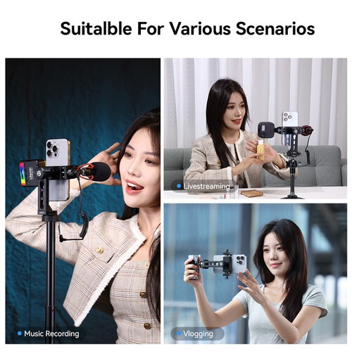 Több rögzítési ponttal – beleértve a hideg cipőket, a 1/4"-20 menetes, a 3/8"-16 menetes és az ARRI rögzítőfuratot – az MA53 kompakt, mobil rig hubként működik mikrofonok, LED-es lámpák, monitorok vagy vezeték nélküli vevőkészülékek számára. Akár vlogol, közösségi tartalmakat forgat vagy élőben streamel, az MA53 egy hatékony és sokoldalú okostelefon-rögzítési megoldás.