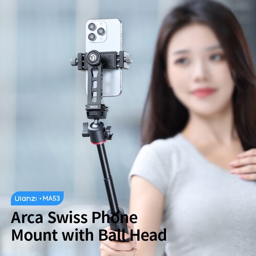 Az Ulanzi MA53 Arca Swiss telefon tartó egy robusztus alumínium okostelefon tartó, beépített gömbfejjel és Arca típusú gyorskioldó talppal. 2,4–3,7 hüvelyk széles telefonokhoz tervezve, sima 360°-os forgást, többszögű pozicionálást és kiterjedt kiegészítő bővítési lehetőségeket kínál – ideális mobil filmkészítéshez, élő közvetítéshez és fényképezéshez.