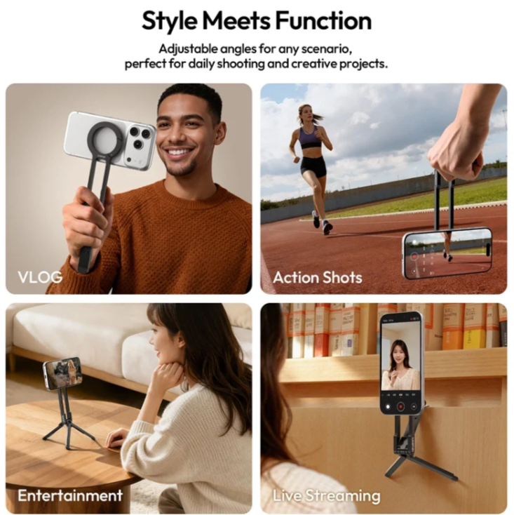 Az Ulanzi MA57 MagSafe karabineres telefonállvány (S007) ötvözi a hordozhatóságot, a sokoldalúságot és a stabilitást, így ideális vlogoláshoz, élő közvetítéshez és kreatív felvételek készítéséhez. Többféle üzemmódjával, kétoldalas MagSafe mágnesekkel és gyorskioldó karabinerrel a telefonod bármilyen helyzetben készen áll a használatra – akár beltéren, akár útközben.
