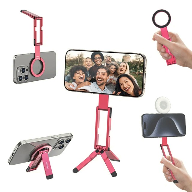 Az Ulanzi MA60 egy kompakt, összecsukható, rózsaszínű mágneses telefonállvány, amelyet sokoldalú mobil felvételek készítésére terveztek. Erős, 14 N-os mágneses tapadása és kétoldalas funkcionalitása ideálisvá teszi kézi, asztali, függőleges vagy vízszintes felvételek készítéséhez, tökéletes utazáshoz, vlogoláshoz vagy tartalomkészítéshez útközben.