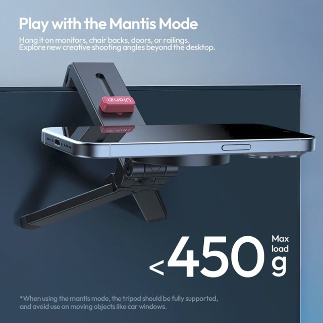 Az MA88 támogatja a Mantis módot is, amely lehetővé teszi, hogy telefonját monitorokra, ajtókra, korlátokra vagy székek háttámláira akassza, hogy a szokásos állványbeállításokon túlmutató, egyedi szögeket rögzítsen. Kompakt és könnyű, mindössze 111 g súlyú, így könnyen elfér a zsebében vagy a táskáján, hogy útközben is használhassa.