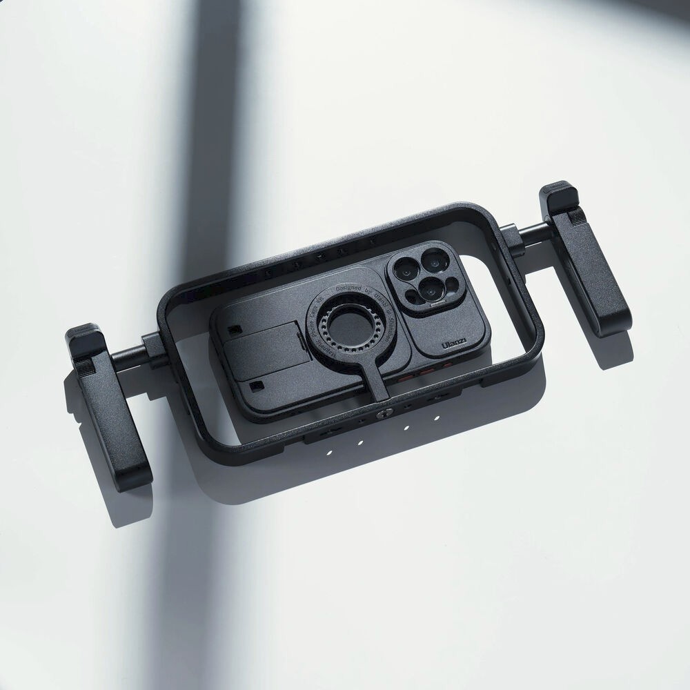 Emelje magasabb szintre mobil videofelvételeit az Ulanzi MG-001 mágneses okostelefon-tartóval, amelyet MagSafe-kompatibilis okostelefonokhoz és telefonhuzatokhoz terveztek. A tartót tartós alumíniumötvözetből és szilikonból készítették, könnyű, mégis strapabíró, professzionális felszerelést biztosít élő közvetítésekhez, vlogoláshoz vagy helyszíni videofelvételekhez. A tartó mágneses állvánnyal rendelkezik, amely 1/4"-20-as csavarral rögzíti a telefont a gyors beállítás érdekében, míg a két oldalsó fogantyú kényelmes és stabil működést biztosít. Ezek a fogantyúk levehetők és a nyolc rögzítőfurat bármelyikébe behelyezhetők, így zökkenőmentesen válthat vízszintes és függőleges tájolás között. Öt 1/4"-20 menetes lyuk és hat hideg cipőfoglalat segítségével mikrofonokat, LED-es lámpákat vagy egyéb kiegészítőket csatlakoztathat, hogy kreatív felépítését tovább javítsa. Az MG-001 N52 mágneses rendszere biztos tartást garantál a telefonjának, így dinamikus felvételek készítése közben is magabiztos lehet.