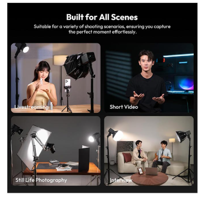 A rugalmasságra tervezett ML100Bi fokozatmentes fényerő-szabályozással rendelkezik, amely egy sima beállító gombbal lehetővé teszi a fényerő pontos szabályozását, míg az LCD-kijelző valós idejű visszajelzést ad a pontos világítás beállításához. A két színű kimenet lehetővé teszi, hogy könnyen alkalmazkodjon a különböző fényviszonyokhoz, így alkalmas beltéri és kültéri felvételekhez egyaránt.