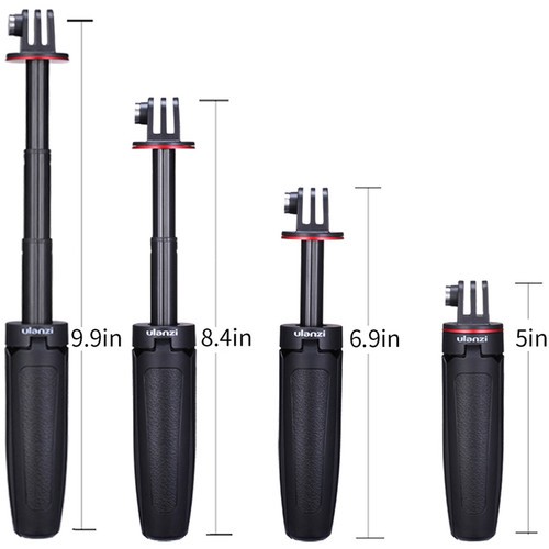 Az Ulanzi MT-09 egy kompakt, 3 az 1-ben mini állvány, markolat és szelfibot, amelyet GoPro és más akciókamerákhoz terveztek. 4,6 hüvelykről 8,9 hüvelykre nyújtható, és könnyen elfér a zsebében, így útközben is vlogolhat és fényképezhet.