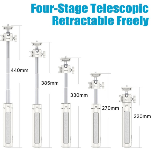 Az Ulanzi MT-42 kinyújtható asztali állvány egy stílusos, hordozható támasztó megoldás azoknak a kreatív szakembereknek, akiknek kompakt, multifunkcionális felszerelésre van szükségük. A tartós alumíniumból készült, mindössze 170 g súlyú MT-42 akár 2 kg súlyú eszközöket is képes megtartani. Maximális magassága 44 cm, így asztali felvételekhez vagy videofelvételekhez is alkalmas, összecsukva pedig mindössze 22 cm-es, így könnyen szállítható és tárolható.