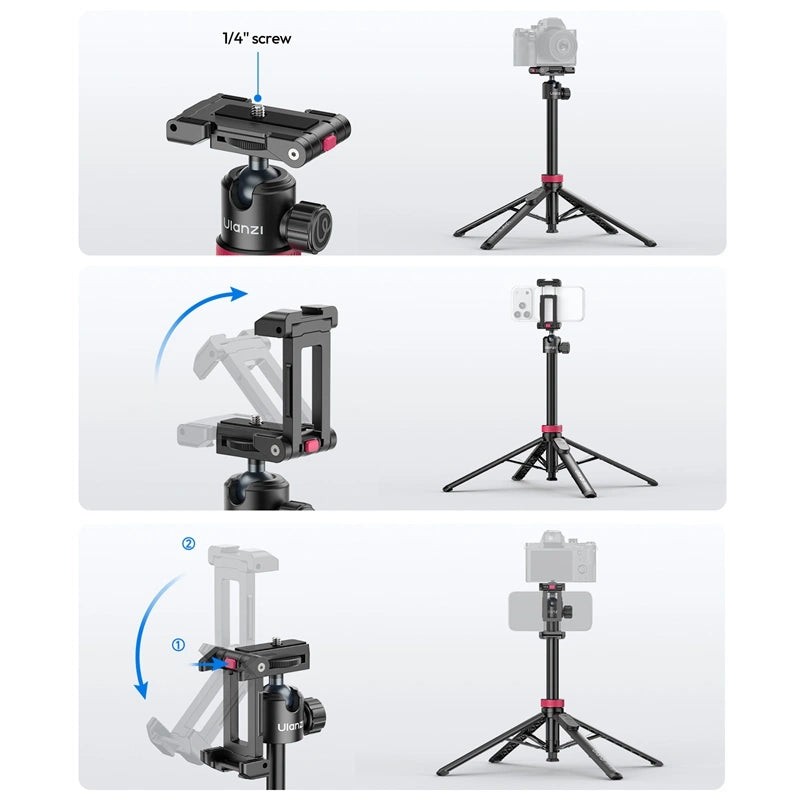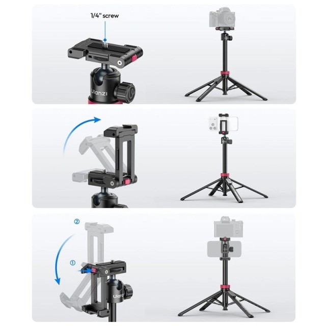 Az Ulanzi MT 44 B egy sokoldalú, 2 az 1-ben önarckép-rúd és állvány, amelyet tartalomkészítők számára terveztek. Ez a hordozható kiegészítő beépített telefon tartóval rendelkezik, amely összecsukható, így alatta egy univerzális csavar nyílik meg kamerák és egyéb felszerelések rögzítéséhez. A lenyűgöző kinyújtható magasságnak és a 360 fokban forgatható gömbfejnek…