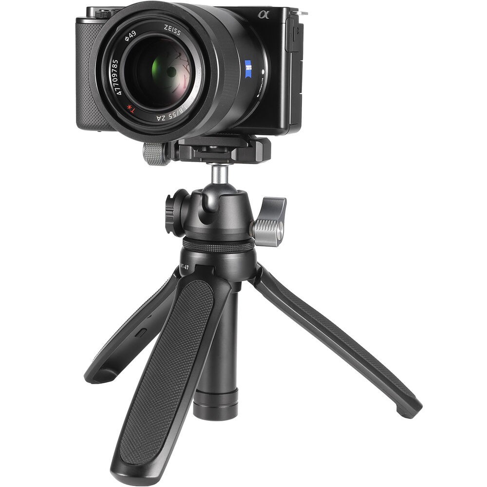 Az Ulanzi MT-47 Mini Arca-Swiss Quick Shoe Tabletop Tripod egy sokoldalú és tartós támasztó megoldás, amelyet olyan tartalomalkotók, fotósok és videósok számára fejlesztettek ki, akik értékelik a sebességet és a rugalmasságot. Alumíniumból készült, ez a mini állvány kiváló merevséget biztosít, miközben súlya mindössze 335 g. Kompakt mérete ellenére akár 2 kg súlyú berendezéseket is képes megtartani, így akciókamerák, kompakt kamerák, tükör nélküli rendszerek, webkamerák és kis videokamerákhoz is alkalmas. Okostelefonok is felszerelhetők egy opcionális adapter segítségével.