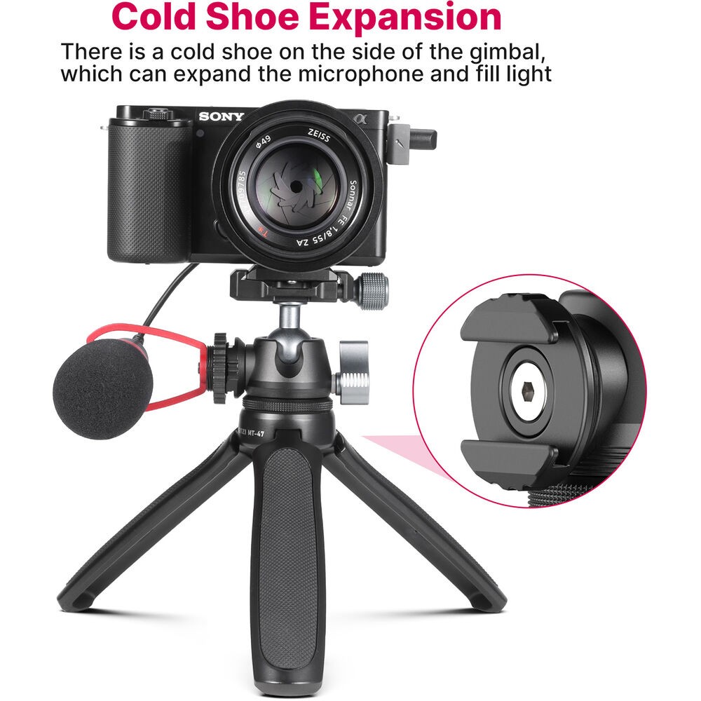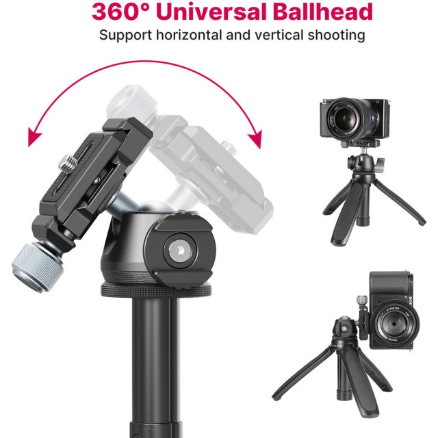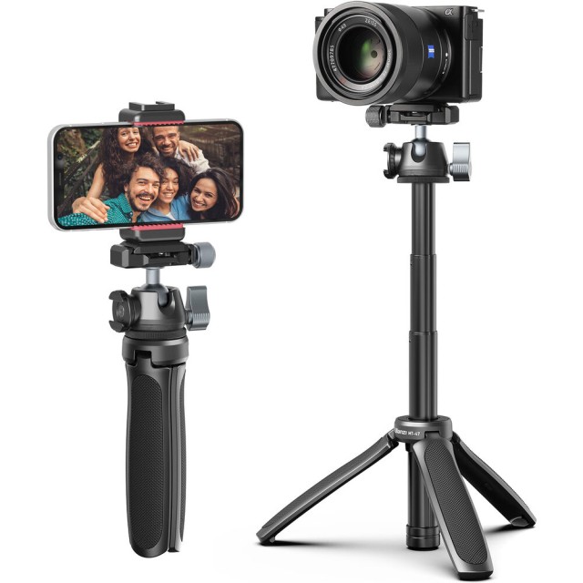 Az Ulanzi MT-47 Mini asztali állvány egy kompakt, teljesen fémből készült állvány, amelyet azoknak a kreatív szakembereknek terveztek, akiknek gyors felállításra, hordozhatóságra és professzionális gyorskioldó kényelemre van szükségük. Vékony Arca-Swiss típusú gyorskioldó gömbfejjel, forgatható hideg cipővel és összecsukható kialakítással rendelkezik, amely kamerakezelőként vagy szelfibotként is használható, így ideális vlogoláshoz, streameléshez és utazási fotózáshoz.