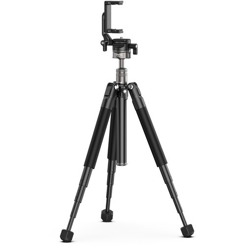 Az integrált gömbfej sima mozgást biztosít 360°-os panorámás pásztázással, húzásvezérléssel és független pásztázás-reteszeléssel, lehetővé téve a pontos keretezést mind vízszintes, mind függőleges irányban. A beépített okostelefon-adapter és a szabványos 1/4"-20 rögzítőcsavar széles körű eszközkompatibilitást biztosít. A levehető és fordítható középső oszlop önarckép-pálcaként is használható, meghosszabbítva a kézi vlogolás vagy kreatív szögek elérhetőségét. További funkciók, mint például a vízmérték, a több lábszög-pozíció és a csúszásgátló talppárnák növelik a stabilitást és a könnyű használatot különböző felvételi környezetekben.