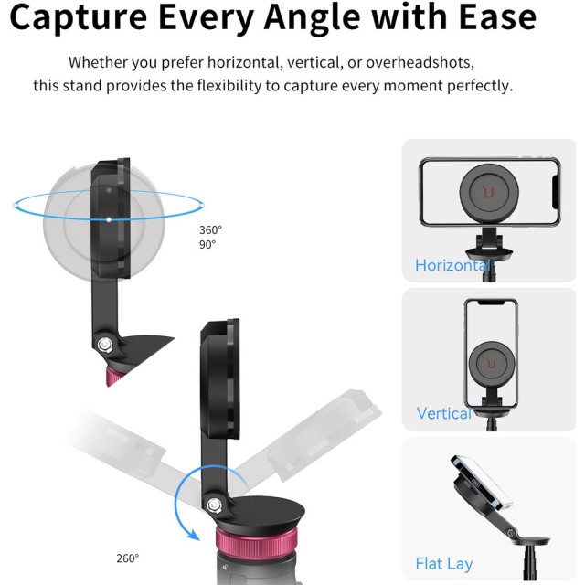 Az Ulanzi MT-84 egy sokoldalú mini állvány és szelfibot MagSafe-kompatibilis okostelefonokhoz és tokokhoz. 360°-ban forgatható tartóval, Bluetooth távirányítóval és 152,8 cm-es maximális magassággal tökéletes vlogoláshoz, élő közvetítéshez és tartalomkészítéshez útközben.