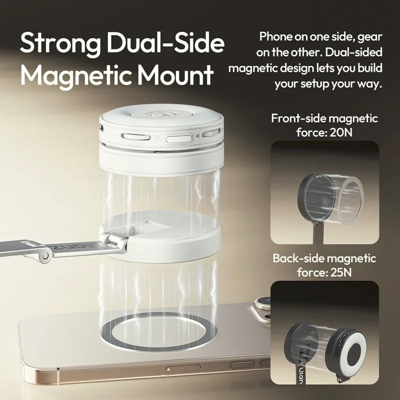 Az Ulanzi MT85 egy automatikus telefonállvány, amely MagSafe-kompatibilis, kétoldalas mágneses tartóval rendelkezik. Négylábú kialakítása stabilitást biztosít, 1,5 méterig nyújtható, és tartalmaz egy Bluetooth-távirányítót a kézmentes fényképezéshez. Kompakt és hordozható, így tökéletes szelfikhez, teljes testfelvételekhez, élő közvetítésekhez…