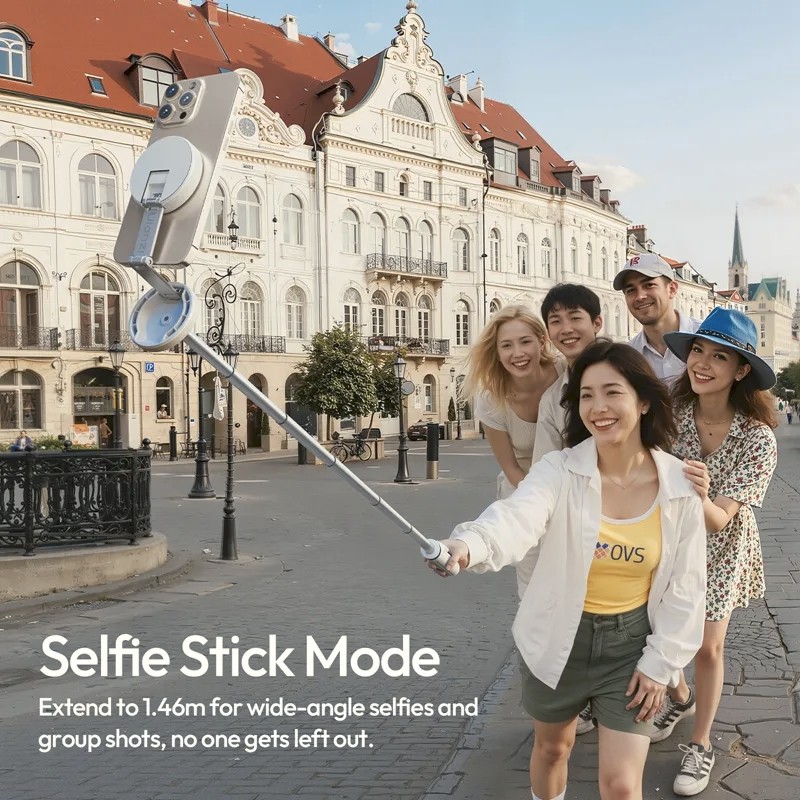 Az Ulanzi MT85 egy automatikus telefonállvány, amely MagSafe-kompatibilis, kétoldalas mágneses tartóval rendelkezik. Négylábú kialakítása stabilitást biztosít, 1,5 méterig nyújtható, és tartalmaz egy Bluetooth-távirányítót a kézmentes fényképezéshez. Kompakt és hordozható, így tökéletes szelfikhez, teljes testfelvételekhez, élő közvetítésekhez és tartalomkészítéshez.