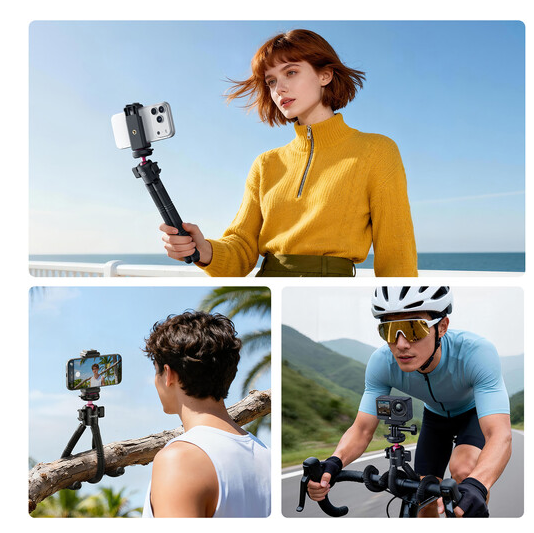 Három rugalmas, vízálló és korrózióálló lába oszlopok, korlátok, ágak vagy egyenetlen felületek köré tekerhető, így a felhasználók olyan egyedi és kreatív szögekből is fényképezhetnek, ahol a hagyományos állványok nem használhatók. Ez különösen hasznosvá teszi kültéri felvételek, utazási tartalmak és dinamikus vlog-felvételek készítéséhez.