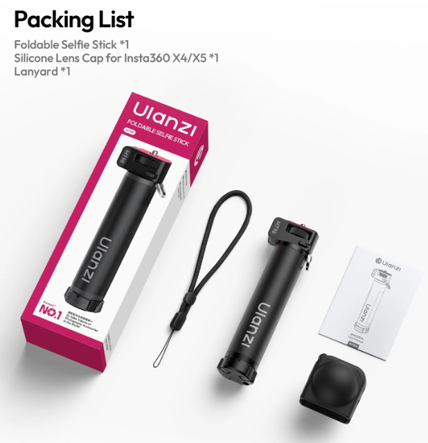 Az Ulanzi MT98 összecsukható, láthatatlan szelfibot egy kompakt, 2 az 1-ben szelfibot és miniállvány, amelyet olyan 360°-os kamerákhoz terveztek, mint az Insta360. Vékony, a 360°-os felvételeken láthatatlan kialakításával, 57 cm-ig kinyújtható hosszával és univerzális 1/4"-es rögzítési pontjával tökéletes választás a magával ragadó tartalmak útközbeni készítéséhez.