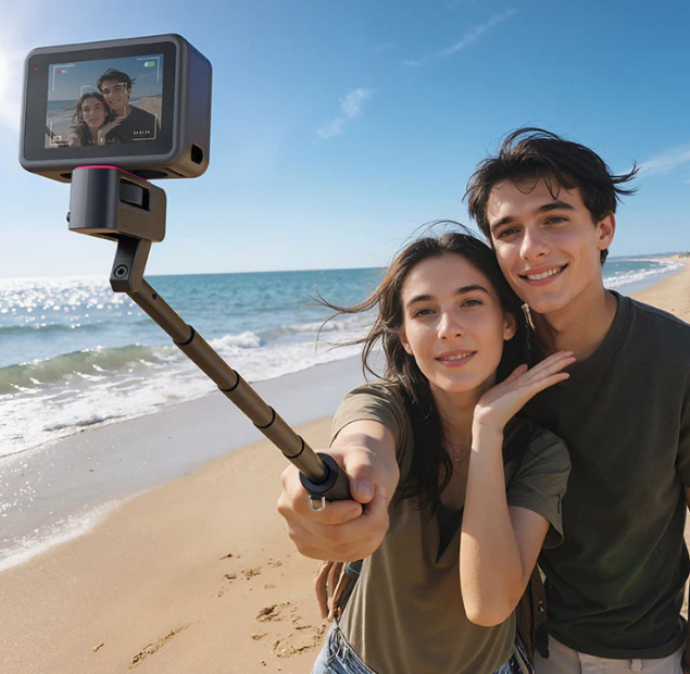 Ez a 2 az 1-ben kialakítás egyszerre működik szelfibotként és mini állványként, így rugalmasságot biztosít kézi felvételekhez és stabil felállításokhoz egyaránt. Az összecsukható kialakításnak köszönhetően rendkívül hordozható, míg a legfeljebb 57 cm-re kinyújtható hossz nagyobb hatótávolságot és kreatív képkivágási lehetőségeket biztosít.