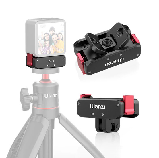 Az Ulanzi 2843A kettős interfészű összecsukható talp sokoldalú, könnyű rögzítési megoldást kínál a DJI Action 2 kamerához. Tartós alumíniumötvözetből készült, mágneses rögzítéssel és összecsukható, hogy egy 1/4"-20-as menetes rögzítési pontot fedjen fel állványhoz vagy GoPro-típusú rögzítésekhez, ami tökéletes stabil és rugalmas beállításokhoz.