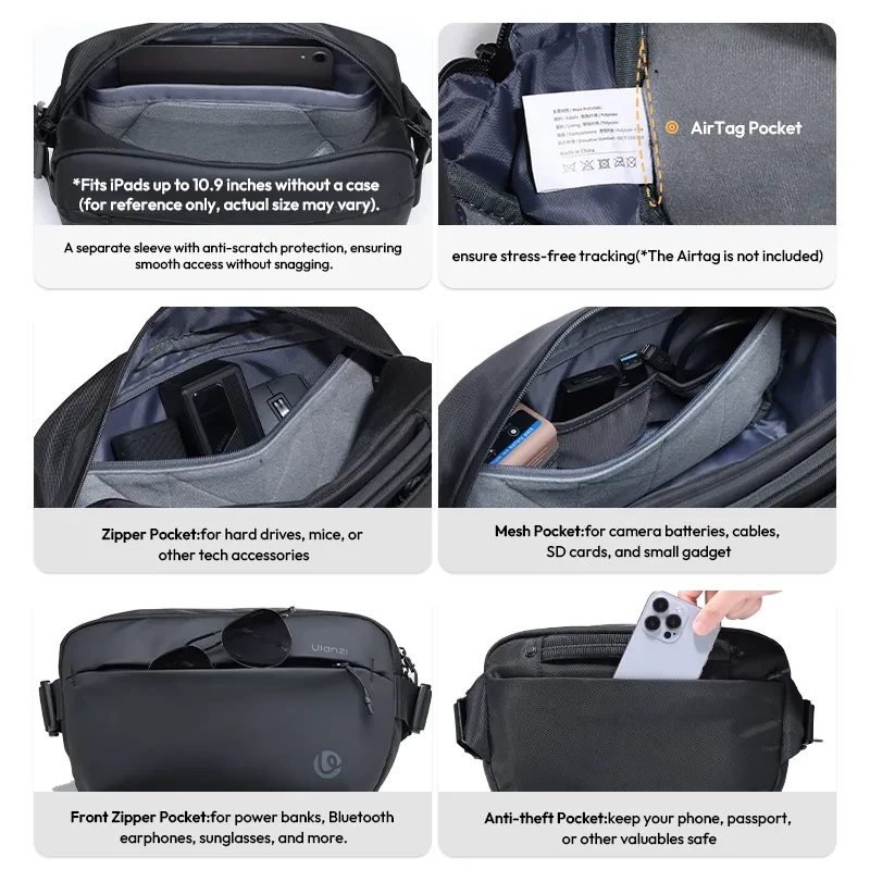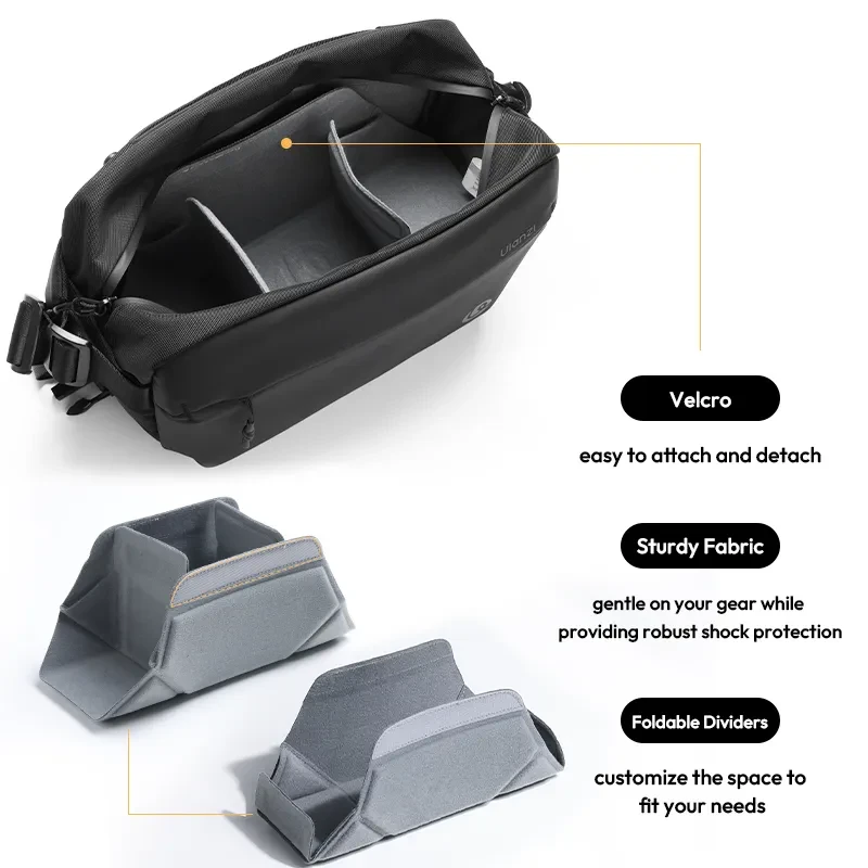Az Ulanzi B120 kamera válltáska 10 literes, rendezett tárolóteret kínál fotósoknak és utazóknak. Fröccsenésálló anyagból és tartós cipzárral készült, így bármilyen időjárási körülmények között megvédi felszerelésedet. Több rekesz, tablet tok és levehető elválasztó teszi könnyűvé a váltást a kamera és a mindennapi használat között. Állítható alsó pánttal állványokhoz, ez a könnyű válltáska tökéletes városi fotózásokhoz, túrákhoz vagy hétvégi kirándulásokhoz.