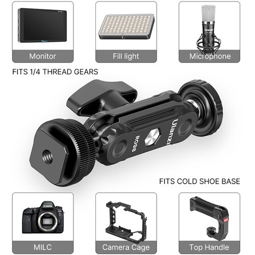 Az Ulanzi R098 Magic Arm hideg cipővel és külső menettel egy sokoldalú és kompakt rögzítési megoldás azoknak a kreatívoknak, akiknek precíz vezérlésre van szükségük a kiegészítők pozicionálásához. A mindössze 3,9 hüvelykes, dupla gömbfejű kar ideális kamerára szerelhető monitorok, LED-es kitöltő lámpák, mikrofonok vagy más kis kiegészítők kamerakamrákhoz, állványokhoz vagy hideg cipő rögzítésekhez való rögzítéséhez.