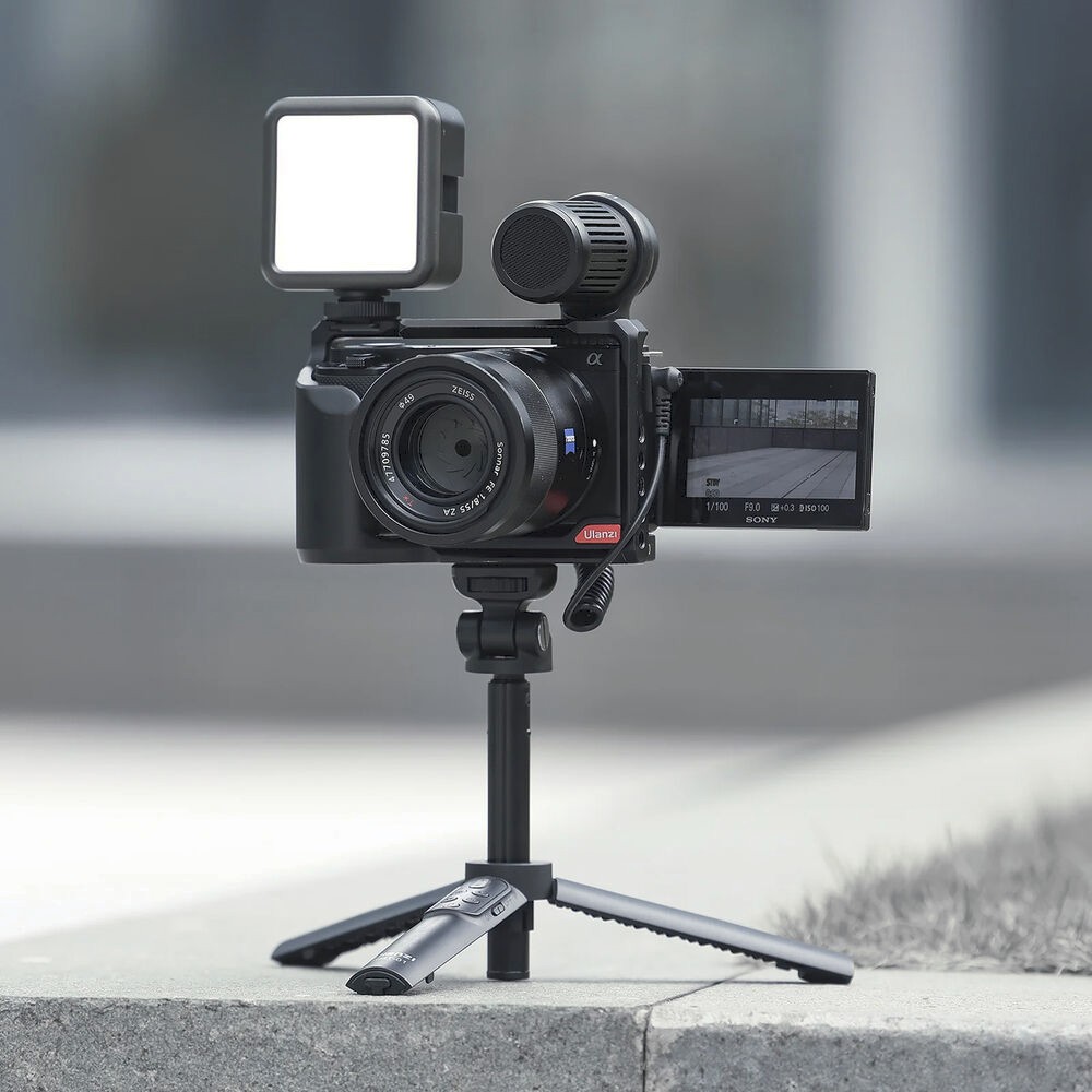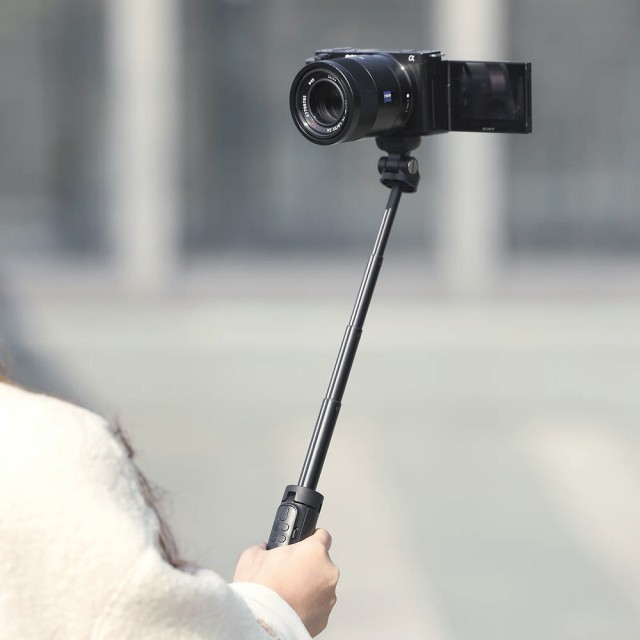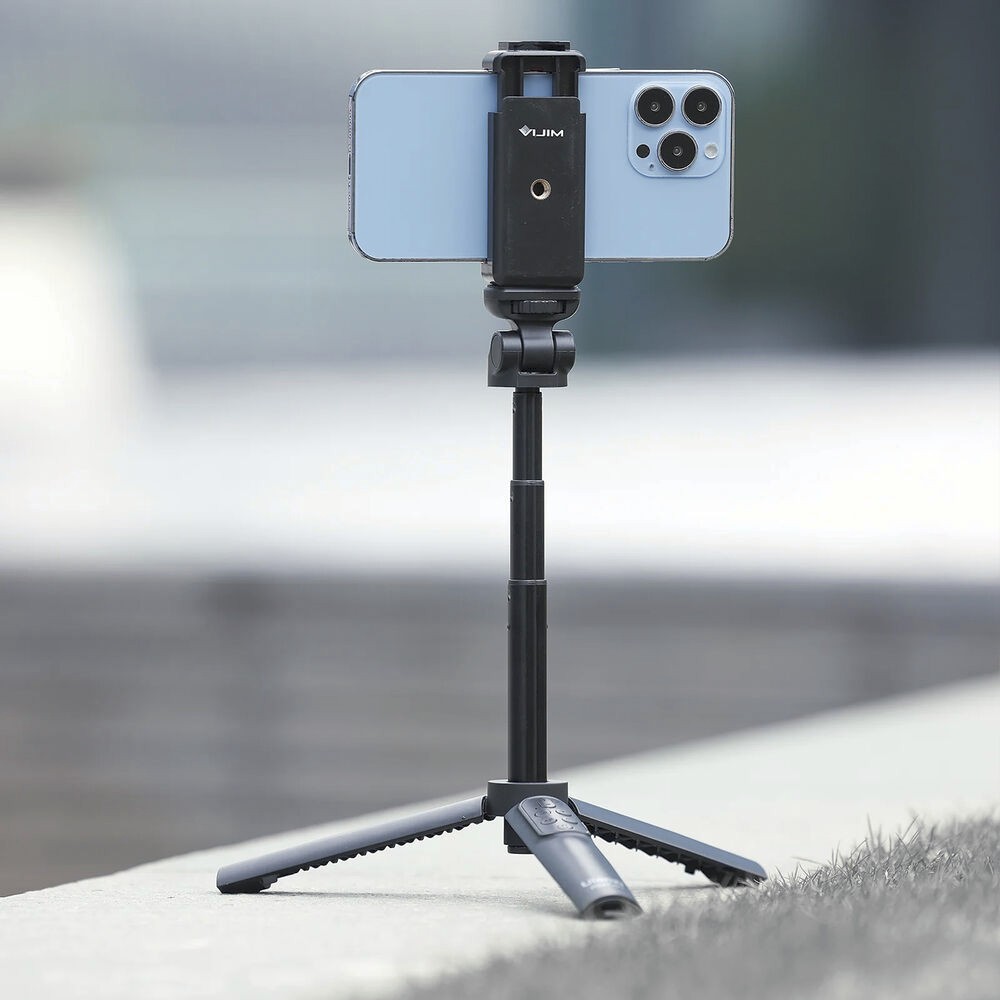 Az Ulanzi RMT-01 Vlog vezeték nélküli távirányító állvánnyal új szintre emelheti vlogolását, élő közvetítéseit és mobil fotózását. Ez a kompakt, könnyű eszköz önarckép-pálcaként és asztali állványként is használható, 4 részes eloxált alumíniumötvözetből készült rúddal, amely 16,5 hüvelykig nyújtható, és 180°-ban dönthető fejjel rendelkezik a rugalmas szögek érdekében. Fogantyúja 120°-ban kinyitható állványlábakká alakul, stabil platformot biztosítva okostelefonok, akciókamerák vagy legfeljebb 3,3 font súlyú kis digitális kamerák számára.