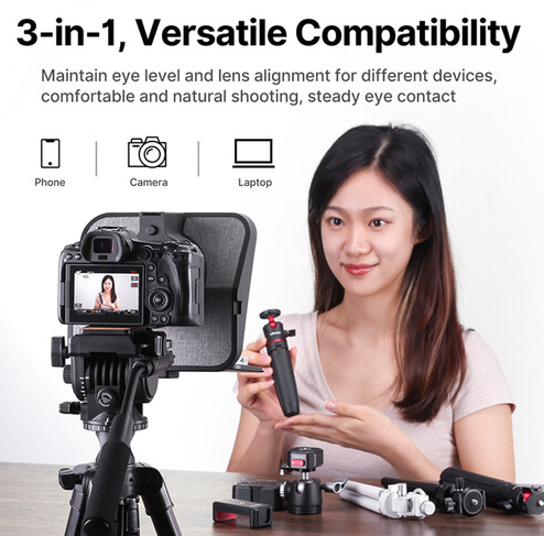 Az Ulanzi R004GBB1 RT02 univerzális teleprompter azoknak a kreatív szakembereknek készült, akiknek könnyű, sokoldalú és egyszerűen használható teleprompter-megoldásra van szükségük. Az RT02 ideális videokészítők, vloggerek, oktatók, élő streamerek és előadók számára, mivel lehetővé teszi, hogy okostelefonját vagy táblagépét tiszta monitorként használja, miközben természetes szemkontaktust tart fenn a kamerával.