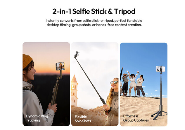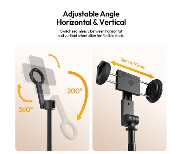 A maximális kinyújtási hossza akár 154 cm is lehet, így ez a szelfibot kiváló hatótávolságot biztosít széles csoportképekhez és magasabb perspektívákhoz. Az állítható fej 360°-os forgást és 200°-os dőlést támogat, lehetővé téve a vízszintes és függőleges felvételi módok közötti zökkenőmentes váltást a maximális kreatív kontroll érdekében.