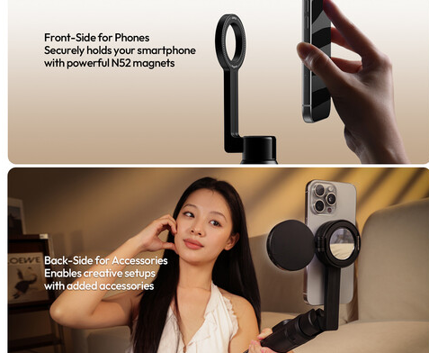 Az Ulanzi SK27 hordozható szelfibot-állvány (telefonrögzítővel ellátott változat) egy sokoldalú 2 az 1-ben vlog-eszköz, amely egy hosszúra kihúzható szelfibotot és egy stabil állványalapot ötvöz. Erős mágneses telefonrögzítéssel, állítható szögekkel és akár 154 cm-es kinyújtási hosszúsággal rendelkezik, így ideális csoportképekhez, dinamikus vlogokhoz és kézmentes tartalomkészítéshez.