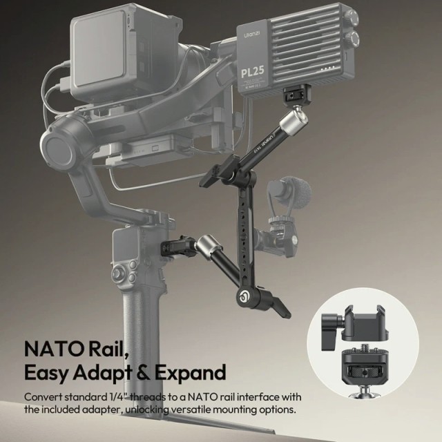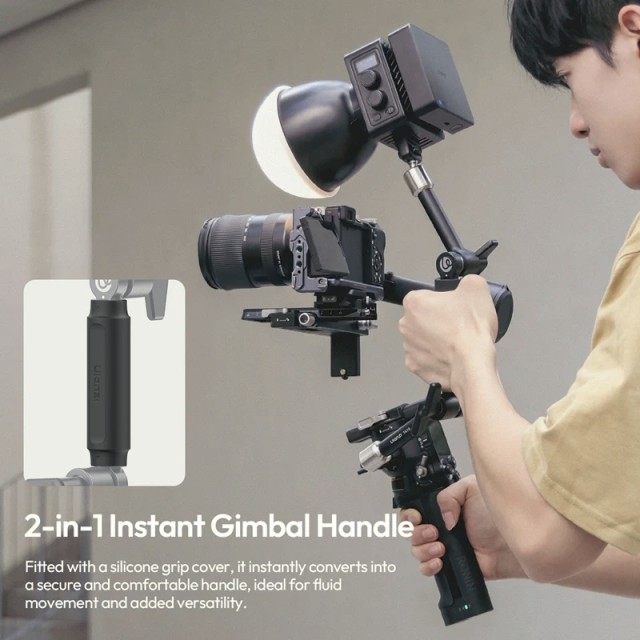 Kiemelkedő jellemzője a 2 az 1-ben gimbal stílusú fogantyú kialakítása. A mellékelt szilikon fogantyúborítással a kar azonnal kényelmes kézi fogantyúvá alakítható, amely sima mozgást és dinamikus felvételeket tesz lehetővé. A kibővített rögzítési lehetőségek érdekében a kétoldalas, többrétegű kialakítás ¼"-20 menetes, ⅜"-16 menetes, ARRI rögzítőcsapokkal és NATO sínnel rendelkezik, biztosítva a biztonságos, forgásgátló rögzítést.