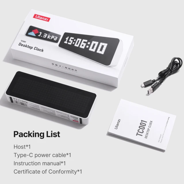 Az Ulanzi TC001 Smart Pixel Clock új szintű stílust és funkcionalitást hoz az asztalára. Ez nem csak egy óra, hanem egy testreszabható, retro ihletésű műalkotás a munkaterületére. A 256 darab, 8x32-es rácsba elrendezett LED-pixelnek köszönhetően a TC001-en mindent megjeleníthet, az időtől és az időjárástól kezdve a testreszabható pixel art animációkig és GIF-ekig. Csatlakoztassa telefonjához az Ulanzi mobilalkalmazáson keresztül, hogy könnyedén megváltoztathassa a dizájnt, vagy szinkronizálja okosotthon-rendszerével. A TC001 tökéletes kiegészítő mindenkinek, aki egy kis személyiséget és technológiát szeretne vinni az íróasztalára.