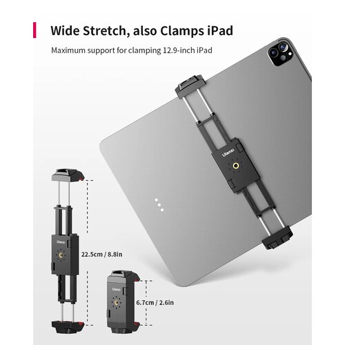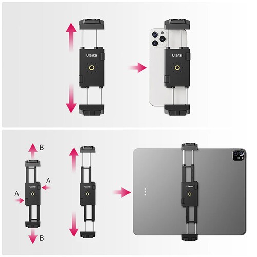 A vloggerek, streamerek, kreatív tartalomgyártók és mások számára tervezett Ulanzi ST-29 állványtartó egy hideg cipőfoglalattal rendelkezik, amely lámpa, mikrofon vagy más kiegészítő felszerelésére használható, míg a két 1/4"-20 menetes állványfurat lehetővé teszi az állványra vagy szelfibotra való felszerelést. A legtöbb okostelefonnal és táblagéppel kompatibilis, beleértve a 12,9 hüvelykes iPad Pro-t is, az ST-29 2,63–8,85 hüvelyk széles eszközökhöz alkalmas, és vízszintes és függőleges irányban egyaránt használható. Az alján található egy nyílás, amelybe a töltőkábel illeszkedik, így a készüléket az ST-29-be rögzítve is feltöltheti. Szilikon párnák is találhatók rajta, amelyek megvédik a karcolásoktól, valamint egy szivacsos párna, amely megakadályozza, hogy a készülék elcsússzon.