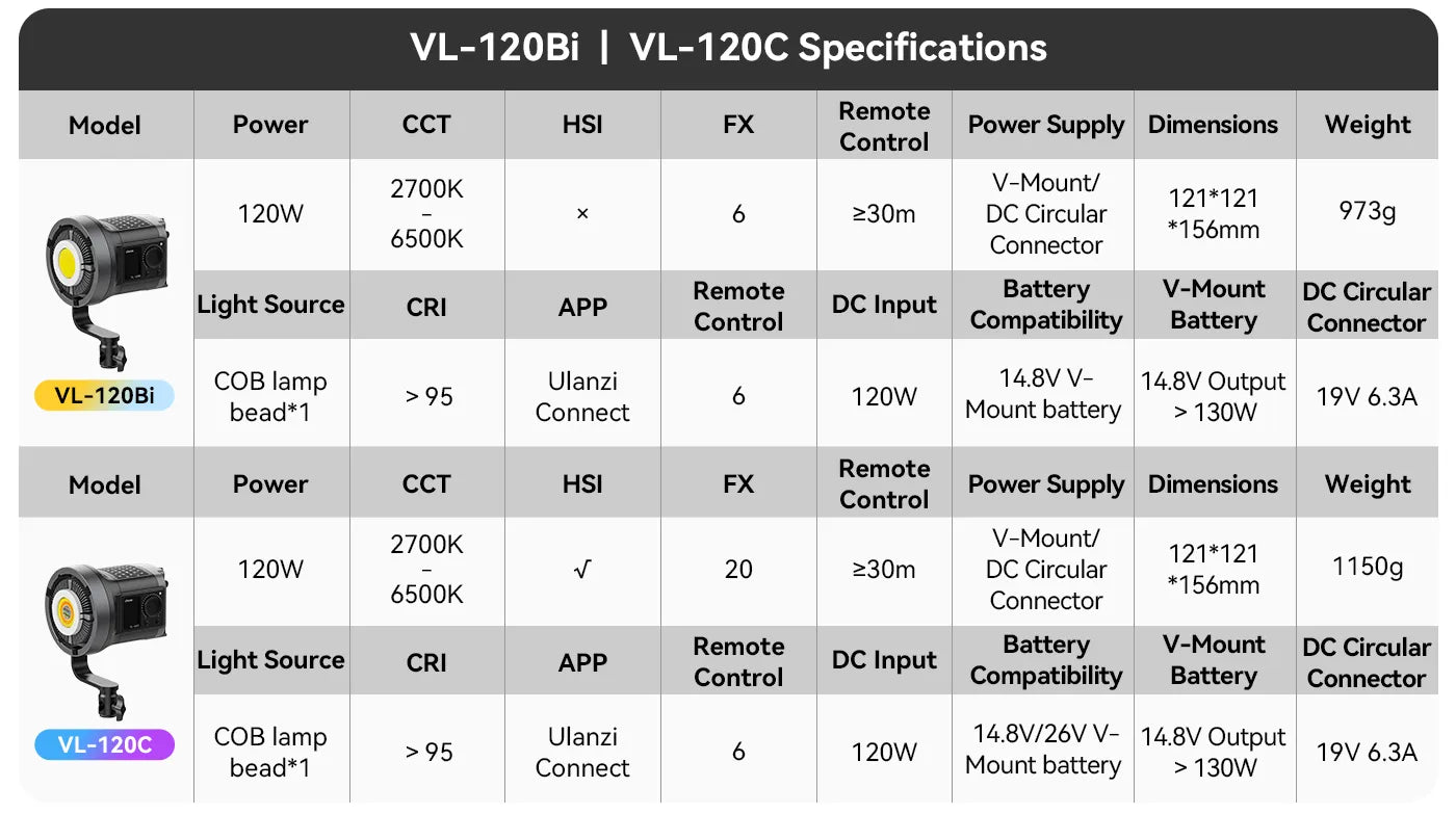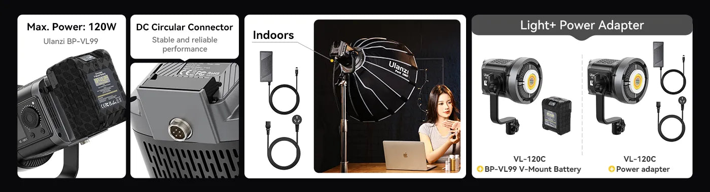 - A VL-120Bi/VL-120C lámpák a V-Mount akkumulátor/adapter kombinációktólkülön kaphatók.