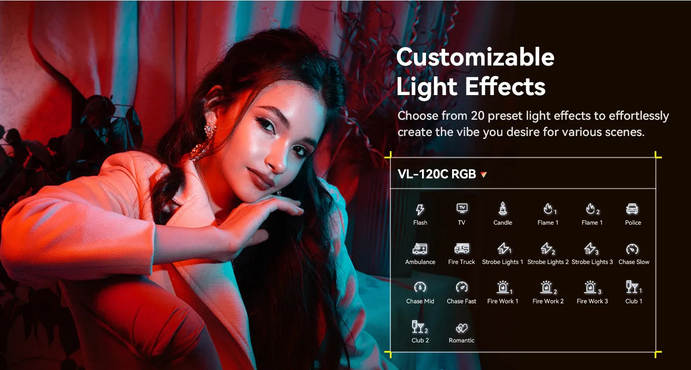 Javítsd videóid megvilágítását az Ulanzi 120 W-os két színű/RGB V-Mount videó lámpával. Ez a sokoldalú lámpa tökéletes esküvői videofelvételekhez, rövid videókhoz, e-kereskedelmi élő közvetítésekhez és termékfotózáshoz, és nagy hatékonyságú COB lámpa gyöngyökkel biztosítja az egyenletes, lágy megvilágítást.