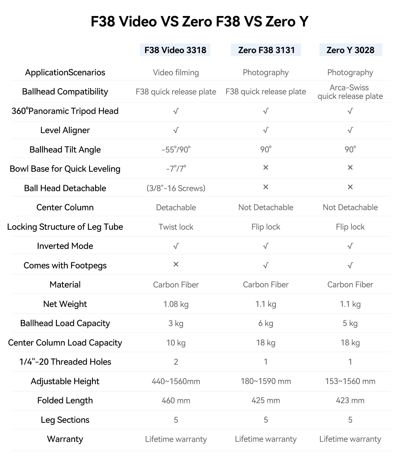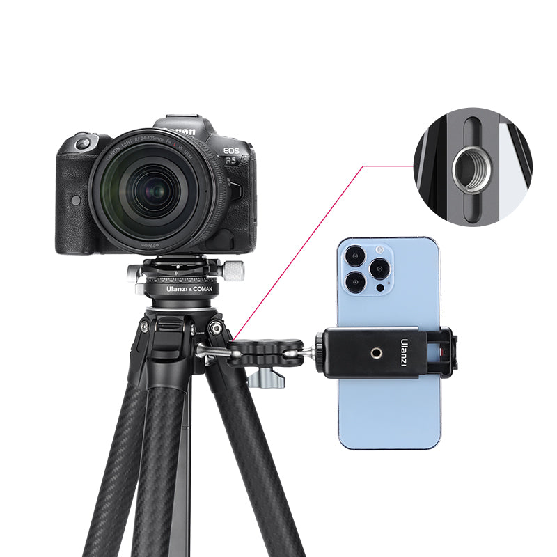 - A háromlábú gömbfej nem levehető. Ha a háromlábú gömbfejet szeretné kicserélni, javasoljuk az Ulanzi F38 gyorskioldó utazási állvány kiegészítők - 1/4 középső oszlop megvásárlását.