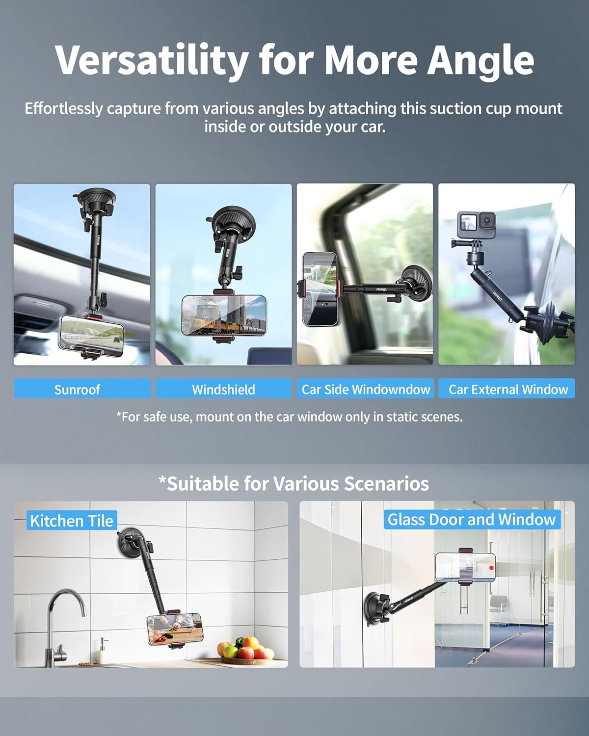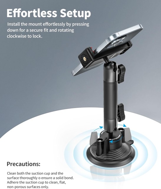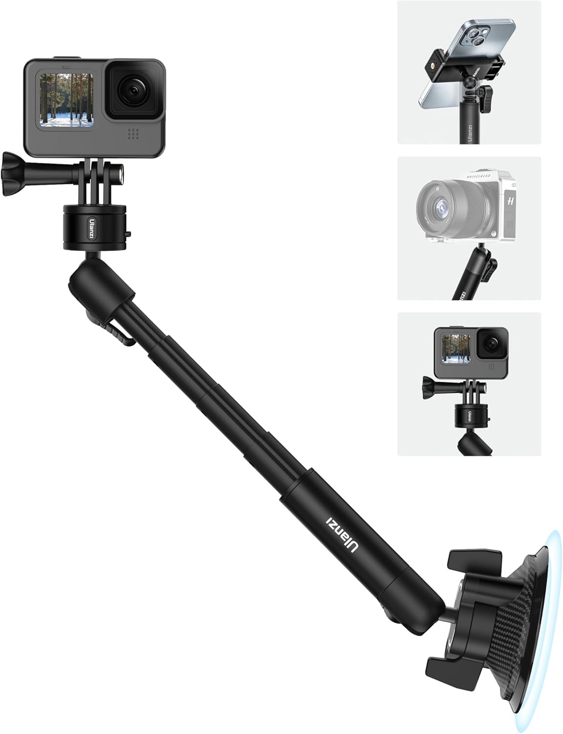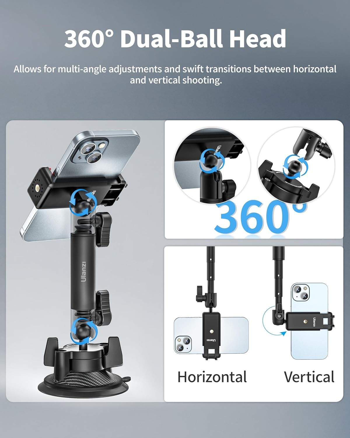 Az Ulanzi ZJ01 mágneses tapadókorongos tartó egy sokoldalú, gyorsan felszerelhető tartó kamerákhoz és okostelefonokhoz, erős tapadókoronggal, 360°-ban forgatható dupla gömbfejjel és állítható teleszkópos karral, amely dinamikus felvételi szögeket biztosít beltéri és járműveken történő használat esetén egyaránt.