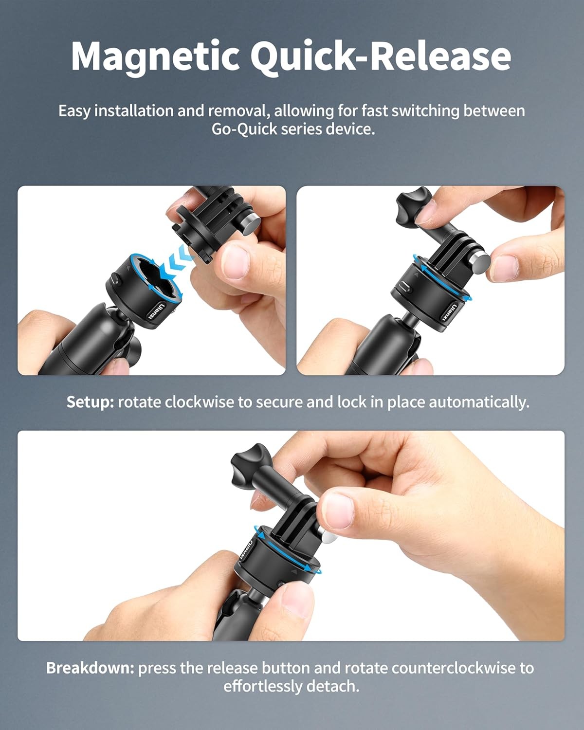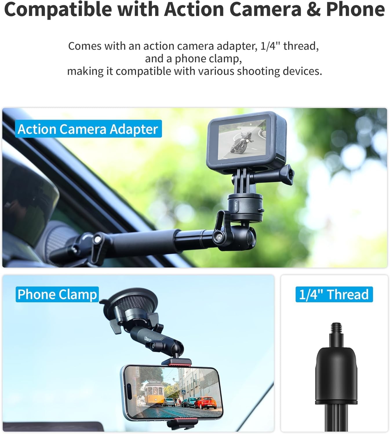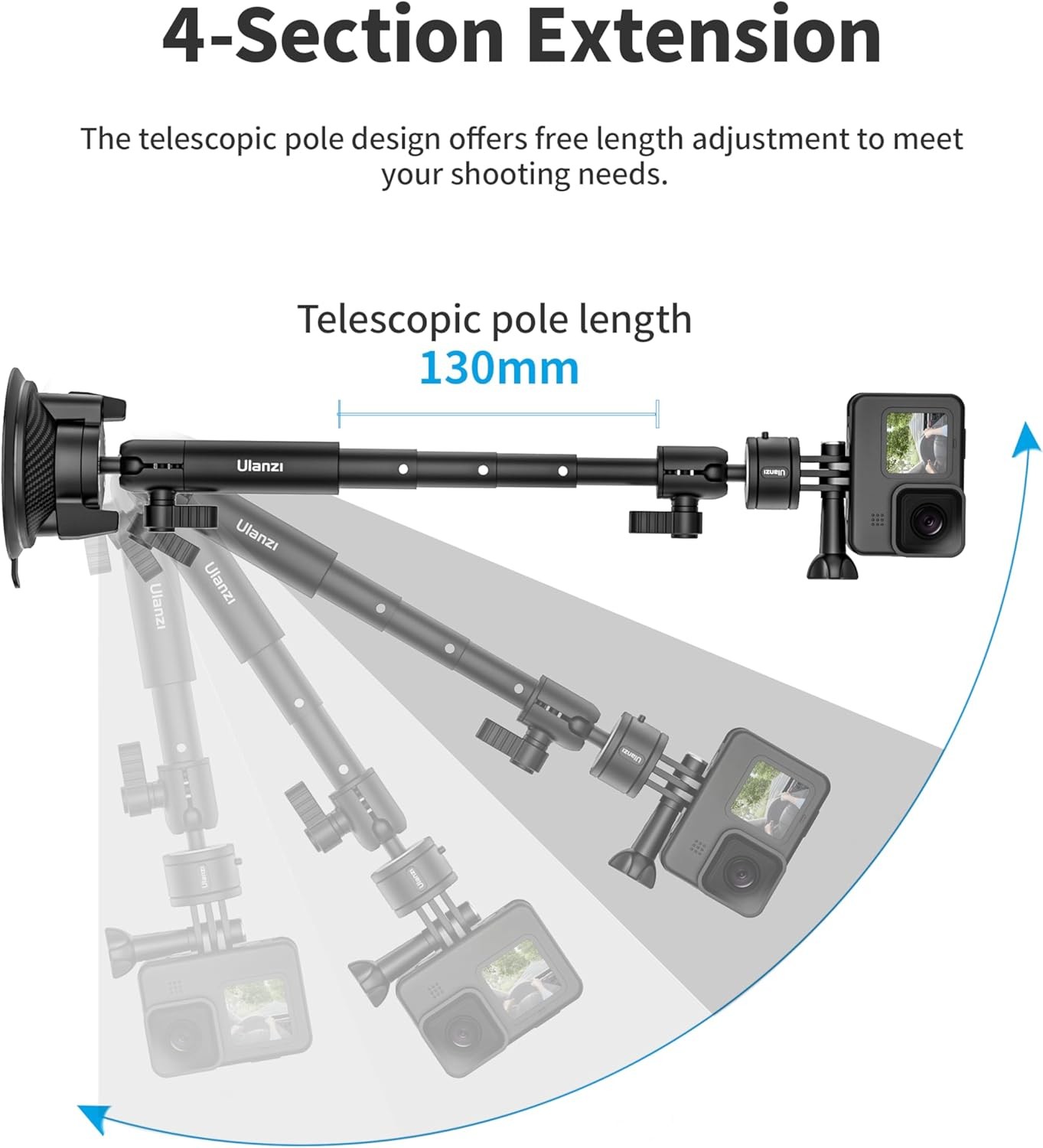 A tartó teleszkópos karja négy kihúzható rúdból áll, amelyek 5,12 hüvelykes állítást tesznek lehetővé, így a felület elhelyezkedésétől függetlenül tökéletes perspektívát érhet el. A ZJ01 ideális POV videókhoz, járművekre való felszereléshez, asztali beállításokhoz vagy rugalmas beltéri/kültéri felvételekhez, és stabilitást, sokoldalúságot és kényelmet kínál a mozgásban lévő tartalomalkotók számára.