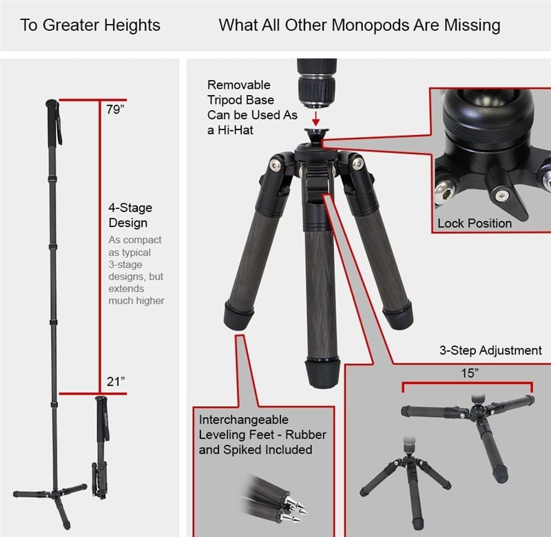 A VariZoom CHICKENFOOT-AL egy könnyű alumínium professzionális monopod, lehajtható állványtalppal, amely kivételes sokoldalúságot, stabilitást és gyors felállítást biztosít videó- és fotófelvételekhez.