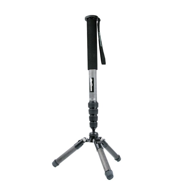 Könnyű, szénszálas, 4 szekciós monopod lehajtható állványlábbal, amely 20 és 78 közé nyúlik, és akár 25 fontot is elbír.