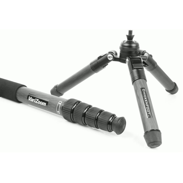Ez a kompakt és könnyű támasz a hagyományos monopod hordozhatóságát és gyors beállítását kínálja a háromlábú láb hozzáadott stabilitásával. Az állványláb gömbcsuklóval kapcsolódik az egylábú részhez, amely lehetővé teszi az egylábú állvány zökkenőmentes átállítását, így bármilyen szükséges szögben rögzíthet. A ChickenFoot képes működni állványként/monopodként, alapvető kézi stabilizátorként, teleszkópos kézi gémként a kis kamerákhoz, vagy akár állványként a kis lámpák és mikrofonok számára, és gyorsan megtalálja helyét a videós eszköztárában. A 4 szekcióból álló szénszálas kialakítás lehetővé teszi, hogy az egység nagyon kompakt formára összecsukható, és 6,5 lábnyi kiterjesztett magasságra bővíthető, miközben kiváló merevséggel rendelkezik. A kiváló minőségű csavarzáras szerelvények könnyű és biztonságos beállítást biztosítanak az útközbeni felvételekhez. Az állványalapzat a szállításhoz összecsukható, és a rugalmas konfiguráció érdekében 3 pozícióban rögzíthető. Az állítható gumiból készült állványlábak kifelé menetesek a szintezés beállításához, és a különböző felületeken való stabilitás érdekében tüskés lábak is járnak hozzá. A fényképezőgépet közvetlenül a lapos alapra rögzítheti a könnyű működéshez, vagy hozzáadhatja saját fotó- vagy videós fejét a pontos pásztázás/döntésvezérléshez. A készülékhez tartozik egy puha párnázott hordtáska és egy levehető csuklópánt is a biztonságos kezelés érdekében.