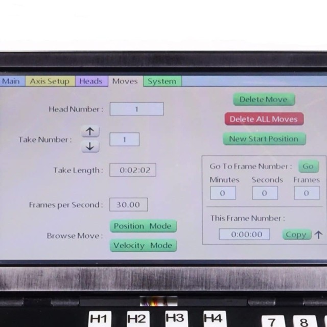 Vezérlő tengelyek: panoráma, dőlés, zoom, fókusz, blende, pálya/dolly, boom