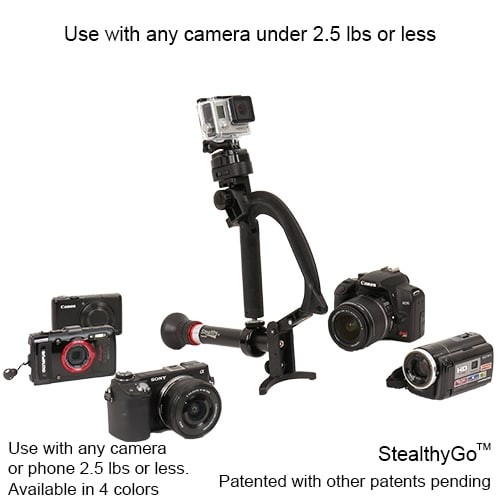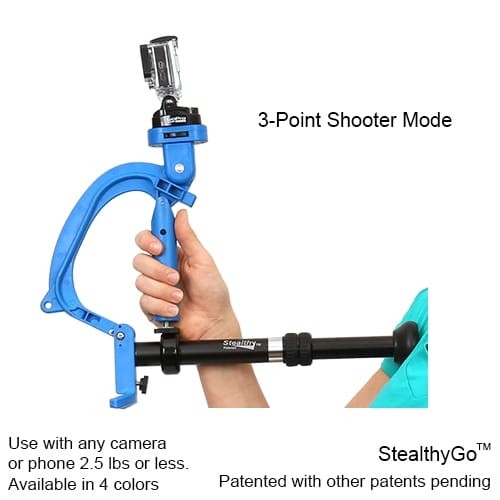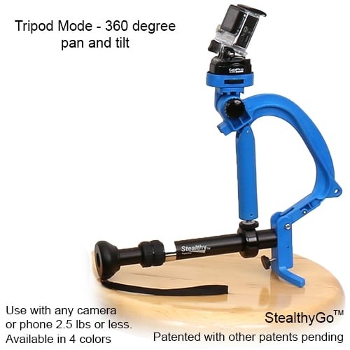 A GoPro® kamerákhoz, mobil eszközökhöz és kis videokamerákhoz tervezett StealthyGo™ másodpercek alatt alkalmazkodik a felvételi igényeidhez. Válts kézi módról monopodra, állványra, asztali vagy 3 pontos felvételi beállításra a szűk helyeken vagy hosszabb kézi felvételek során a stabil felvételek érdekében. A beépített övcsipesz gyors hozzáférést biztosít „csípő módban”, így soha nem maradsz le egy felvételről sem.