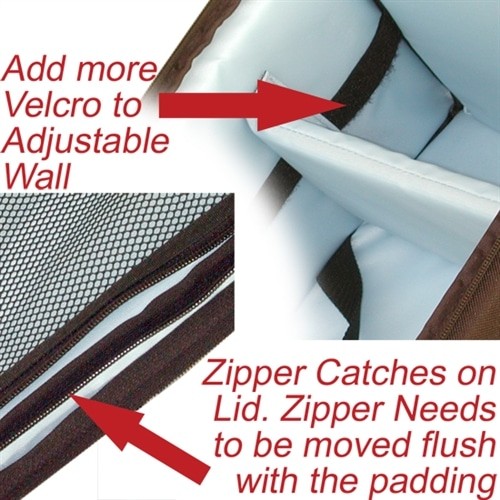 Állítható belső falak a fényképezőgép és a kiegészítők elválasztásához