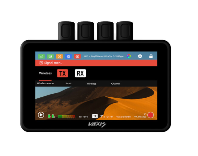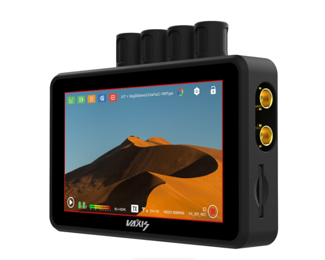 A Vaxis Atom A5 5,5 hüvelykes vezeték nélküli RX/TX SDI/HDMI monitor ötvözi a nagy fényerejű kamerán keresztüli megfigyelést a robusztus vezeték nélküli videóátvitellel és -vételével egy könnyű, 360 grammos készülékben, amely 1920x1080 felbontású érintőképernyős LCD-vel rendelkezik, 2000 cd/m² fényerővel és 1200:1 kontrasztaránnyal a tiszta nappali megtekintés érdekében. Támogatja az 1080p60 felbontást SDI és HDMI bemenetekkel, átkötő kimenetekkel, lehetővé teszi az MP4 proxy felvételt közvetlenül microSD-re, és zökkenőmentesen integrálható a Vaxis Atom ökoszisztémába (kompatibilis az Atom 500/600 sorozattal) akár 1000 láb távolságú látóvonalas átvitelhez. További professzionális funkciók: időkód szinkronizálás a kamera felvételindítóval, akár 50 3D LUT tárolása, átfogó képalkotó eszközök (hullámforma, vektorszkóp, hisztogram, csúcsérték), két cserélhető antenna és rögzített kettős L-sorozatú akkumulátorlap a hosszabb üzemidő érdekében.