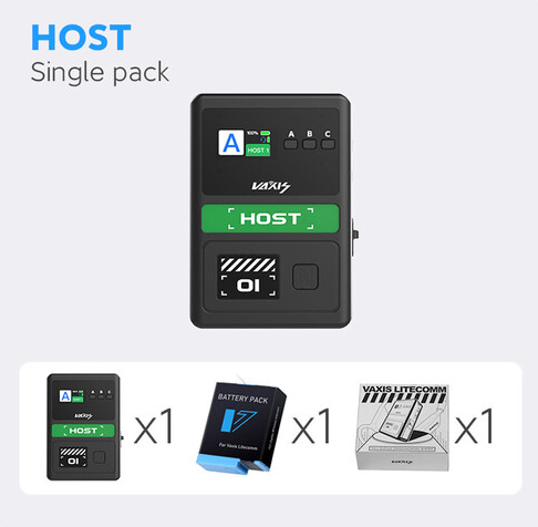 A Vaxis Litecomm V1 Host Controller egy teljes duplex vezeték nélküli interkom hub a Litecomm V1 rendszerhez, amely 1148' (350 m) látótávolságot biztosít 1,9 GHz-es DECT használatával, NFC gyors párosítást a hosztal, Bluetooth 5.1 csatlakozást az Air Headsethez (külön megvásárolható), kettős mikrofonos DSP zajcsökkentést, USB-C töltés/audio, 3,5 mm-es kimenet, valamint a mellékelt 1720 mAh-s cserélhető akkumulátorral akár 8 óra üzemidő, egyszerű kezeléssel, ideális produkciós csapatok számára.