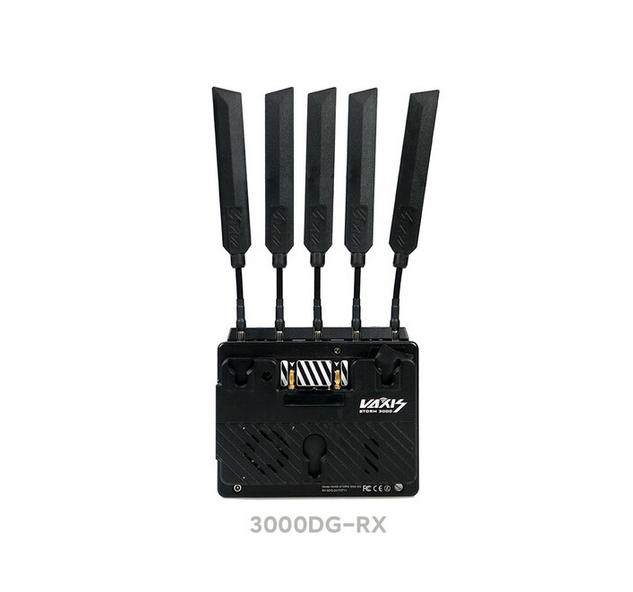 A Vaxis Storm 3000DG vezeték nélküli vevő (Gold Mount) tömörítetlen, késleltetésmentes 1080p60 videót biztosít akár 3000 láb távolságból, kettős 3G-SDI és HDMI 1.3 kimenettel, AES-128 titkosítással, 20 csatornás 5 GHz-es működéssel és integrált Gold mount lemezzel professzionális többvevő-konfigurációkhoz.