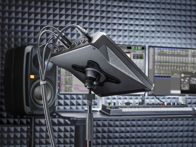 A tartó bármilyen szabványos mikrofonállványhoz rögzíthető. Így tökéletes megoldást kínál a készülék különböző pozíciókba történő elhelyezéséhez.