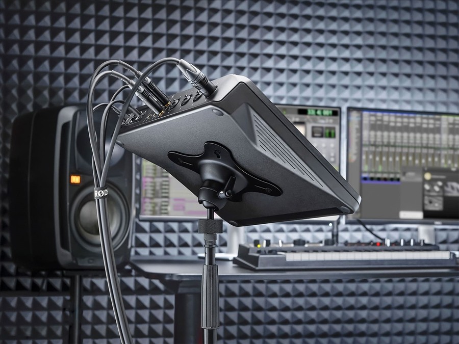 Robusztus, állítható és pozícionálható tartóa RØDECaster Pro II és a RØDECaster Duo készülékekhez. BármelyVESA rendszerrel kompatibilis termékkel (TV-állványok, monitorok stb.) használható. A csavarok távolsága 100 mm és 75 mm.